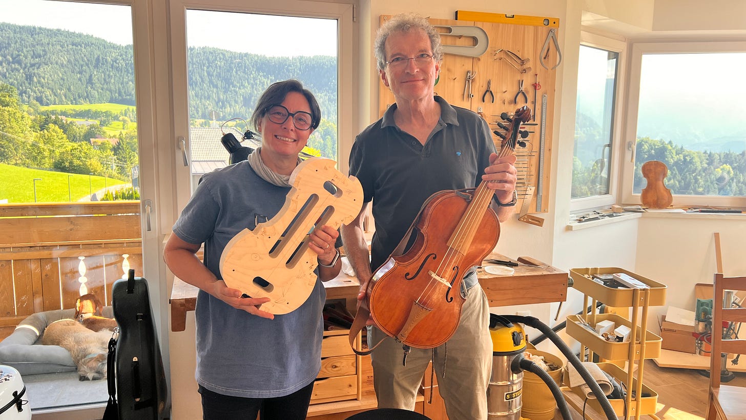 We have one other confession: that video is now terribly outdated, because one of the instruments has been sold in the meantime! The one with the modern setup found his home with Martin Timphus, violist in the Bamberger Symphoniker Orchestra.